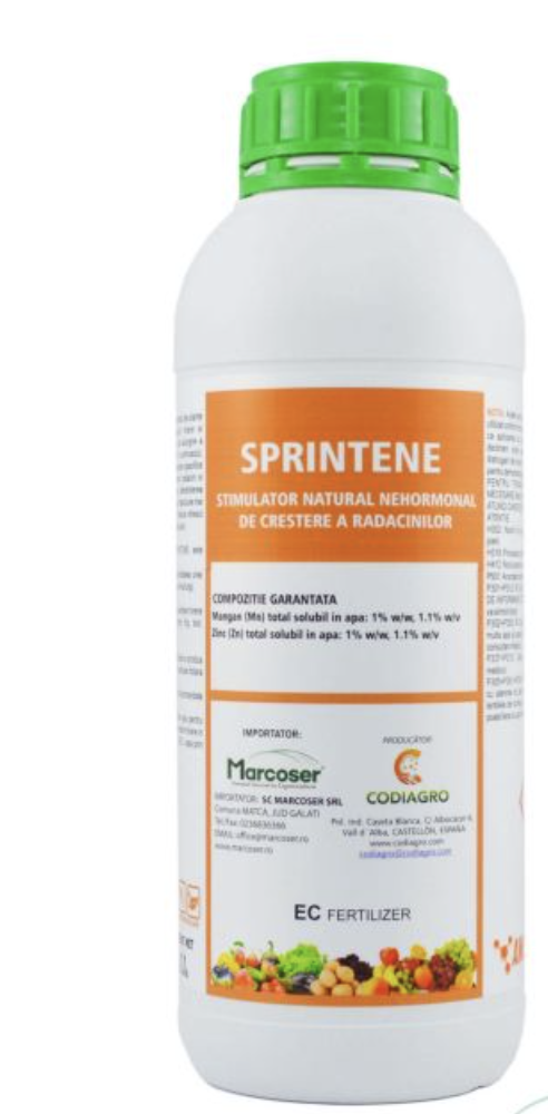 - Pe paturile de germinatie se aplica odata pe saptamana o udare prin stropire cu o solutie de 2 L Sprintene la 1000L (2 ml/L) apa pentru o dezvoltare rapida a frunzulitelor si a radacinilor;