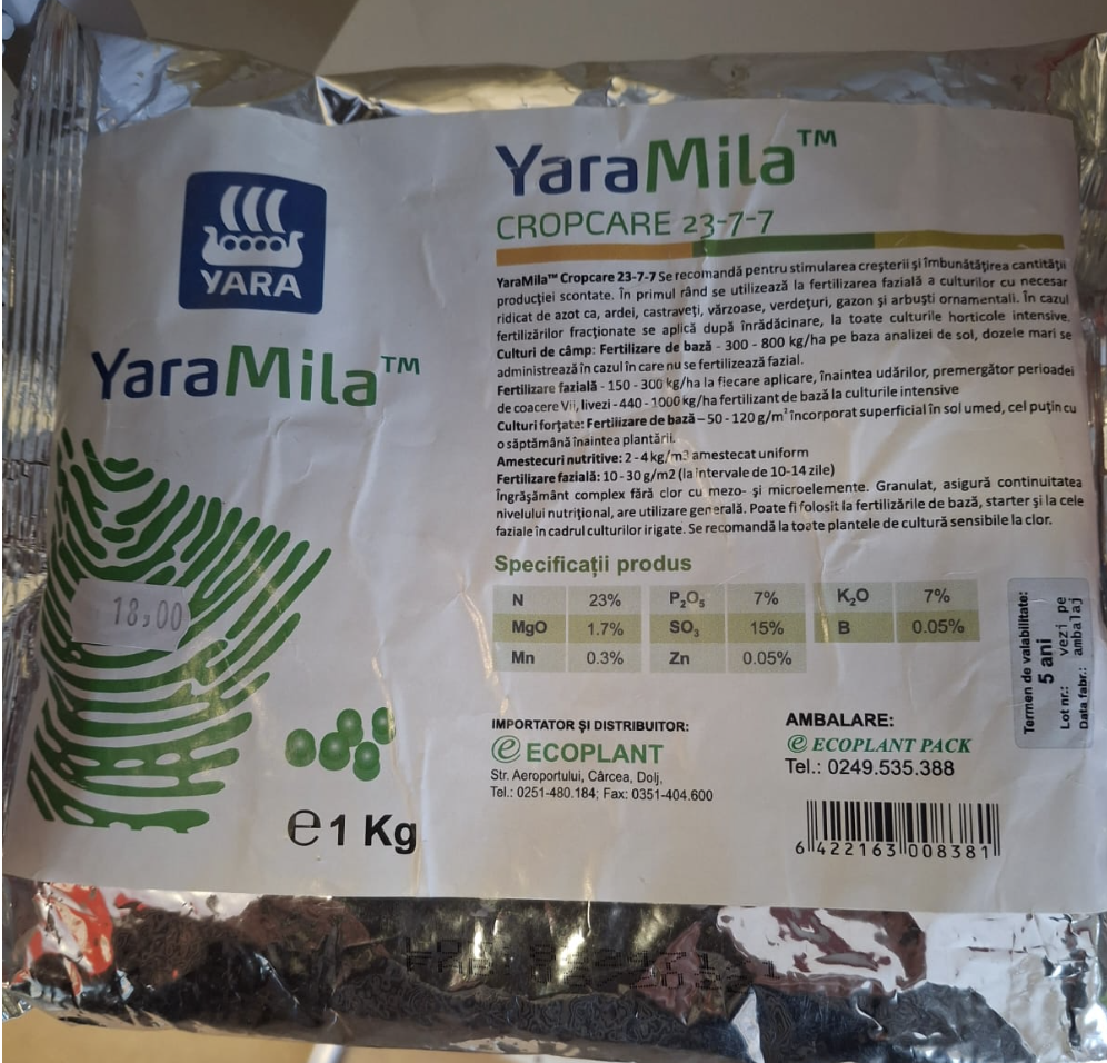 YaraMilaTM CROPCARE 23-7-7 poate fi utilizat la toate culturile de camp si horticole in doze recomandate de tehnologiile de fertilizare.