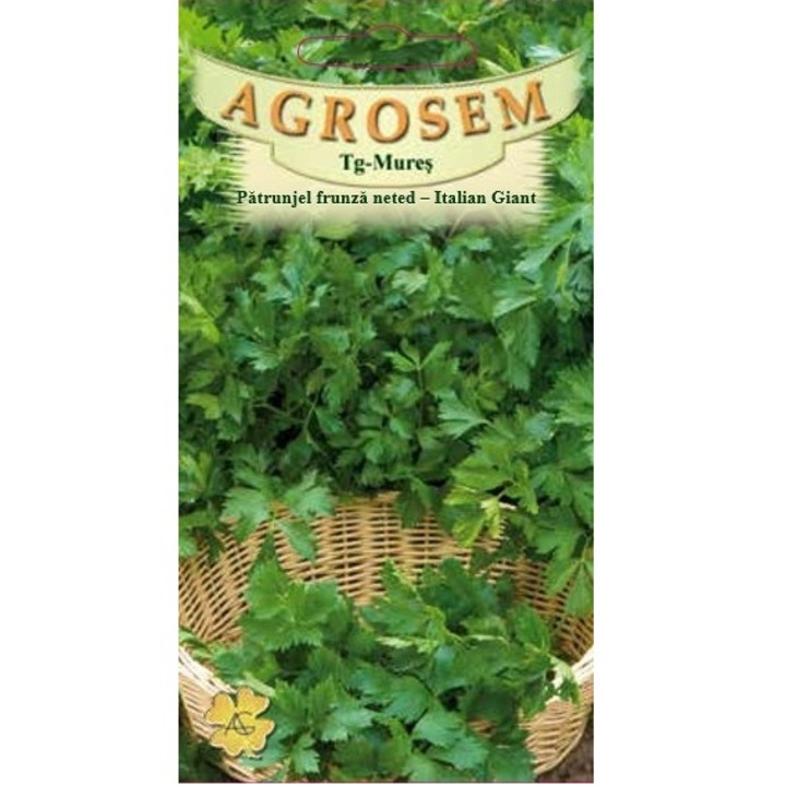Pătrunjelul Gigant Italian este un soi timpuriu foarte productiv, care se deosebeste prin rozete cu frunze foarte mari, care ajung la inaltimea de 60-90 cm. Frunzele au o aroma puternica, sunt late, lucioase si au culoarea verde inchis.